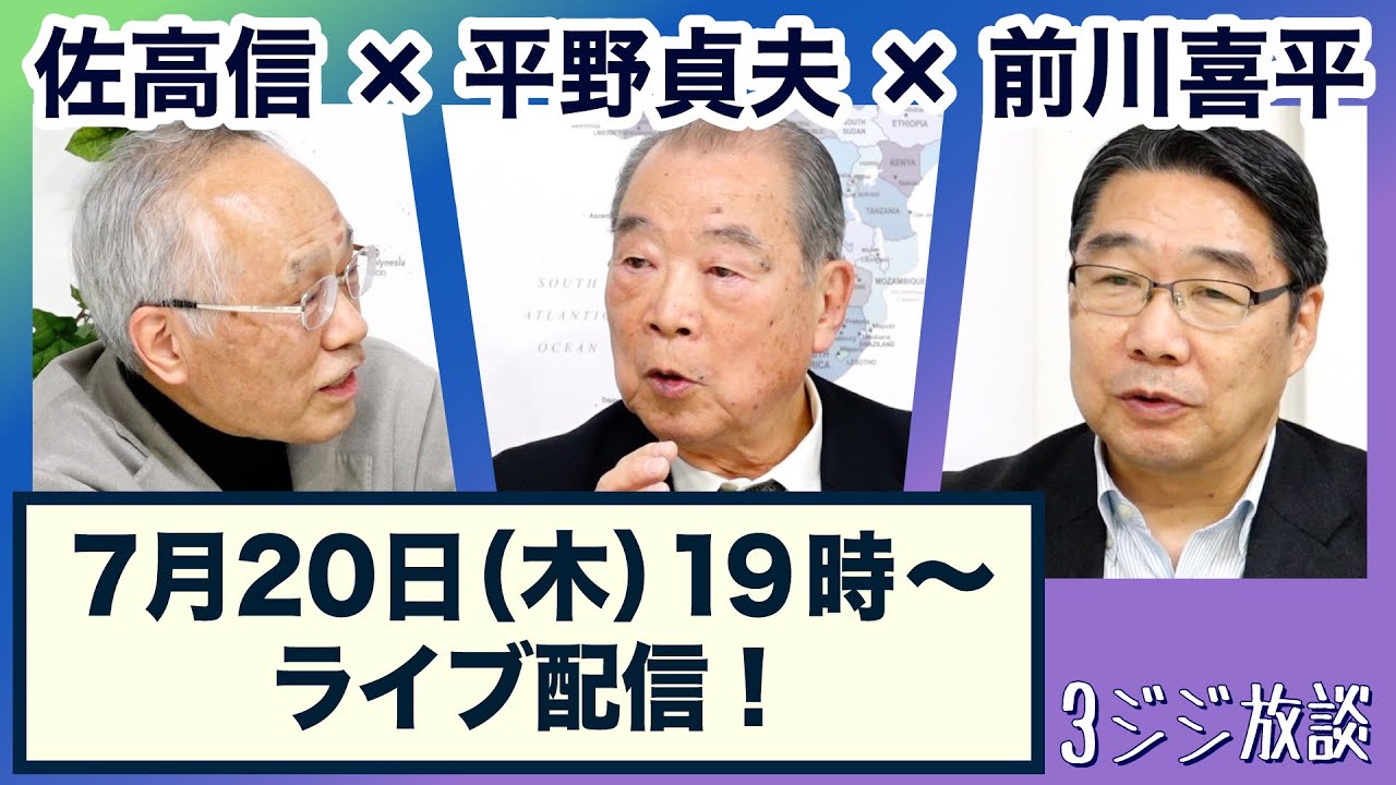 政治のウラ、今昔。 おなじみ平野貞夫と佐高信、前川喜平が生出演。 どこへ話がゆくのか分からない3ジジ放談、今月もお楽しみください。