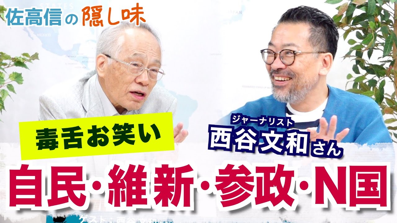 政治の崩壊は早いですね、自民の終わりも見えてきて、その先にあるのは何なのかと暗澹たる思いですが、しかし佐高さんの隠し味は、いつものように、西谷節全開で、諧謔と哄笑の自民・維新・参政・N国のお笑い研究。