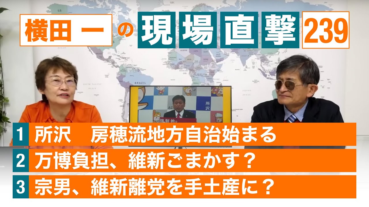 今週も採れたて横田さんの現場レポート! ①所沢 房穂流地方自治始まる ②万博負担、維新ごまかす? ③宗男、維新離党を手土産に?