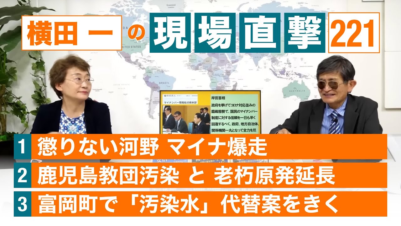 今週も採れたて横田さんの現場レポート! ①懲りない河野 マイナ爆走 ②鹿児島教団汚染と老朽原発延長 ③富岡町で「汚染水」代替案をきく