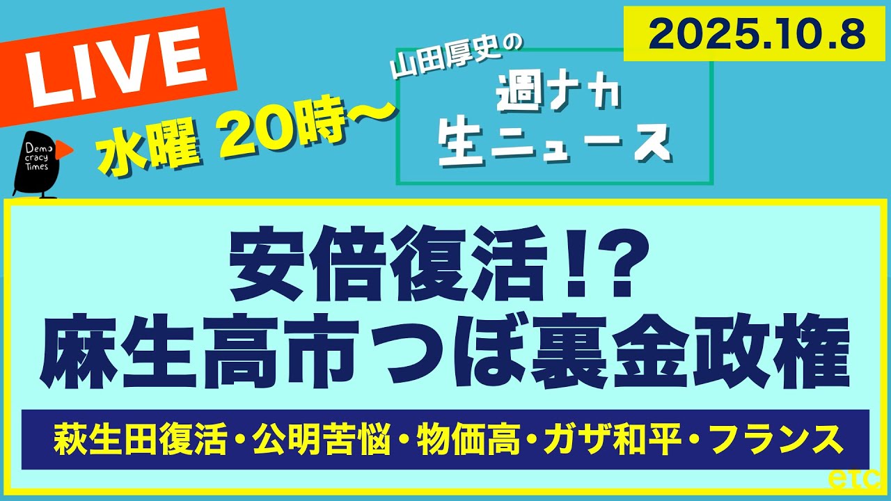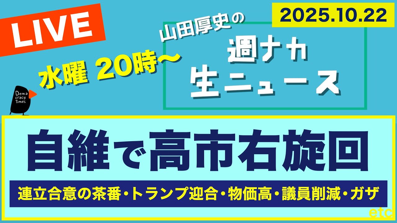 <自国維で高市政権!?>「二股」玉木/高市トレード/ガザ停戦/米中貿易戦争【山田厚史の週ナカ生ニュース】