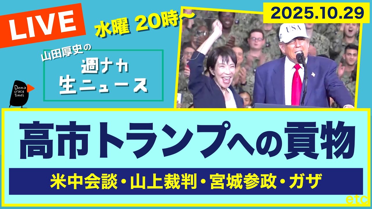 <はしゃぐ高市 トランプへの貢物> 米中会談/山上裁判/宮城参政/ガザ【山田厚史の週ナカ生ニュース】