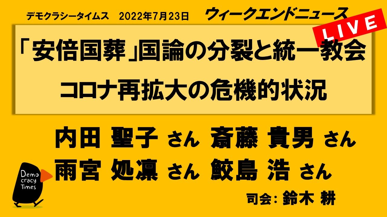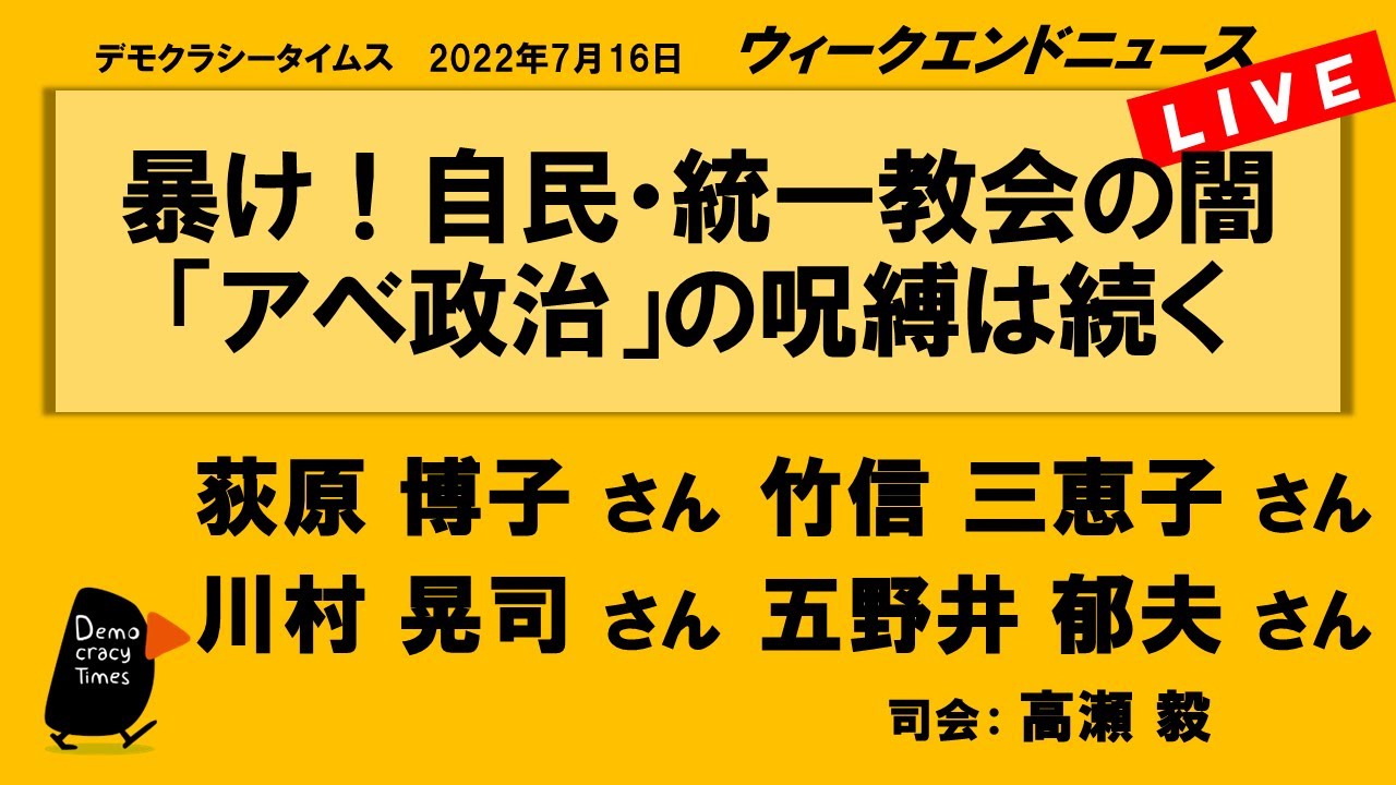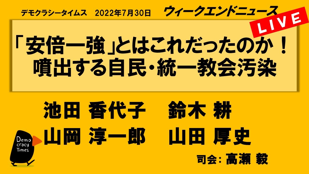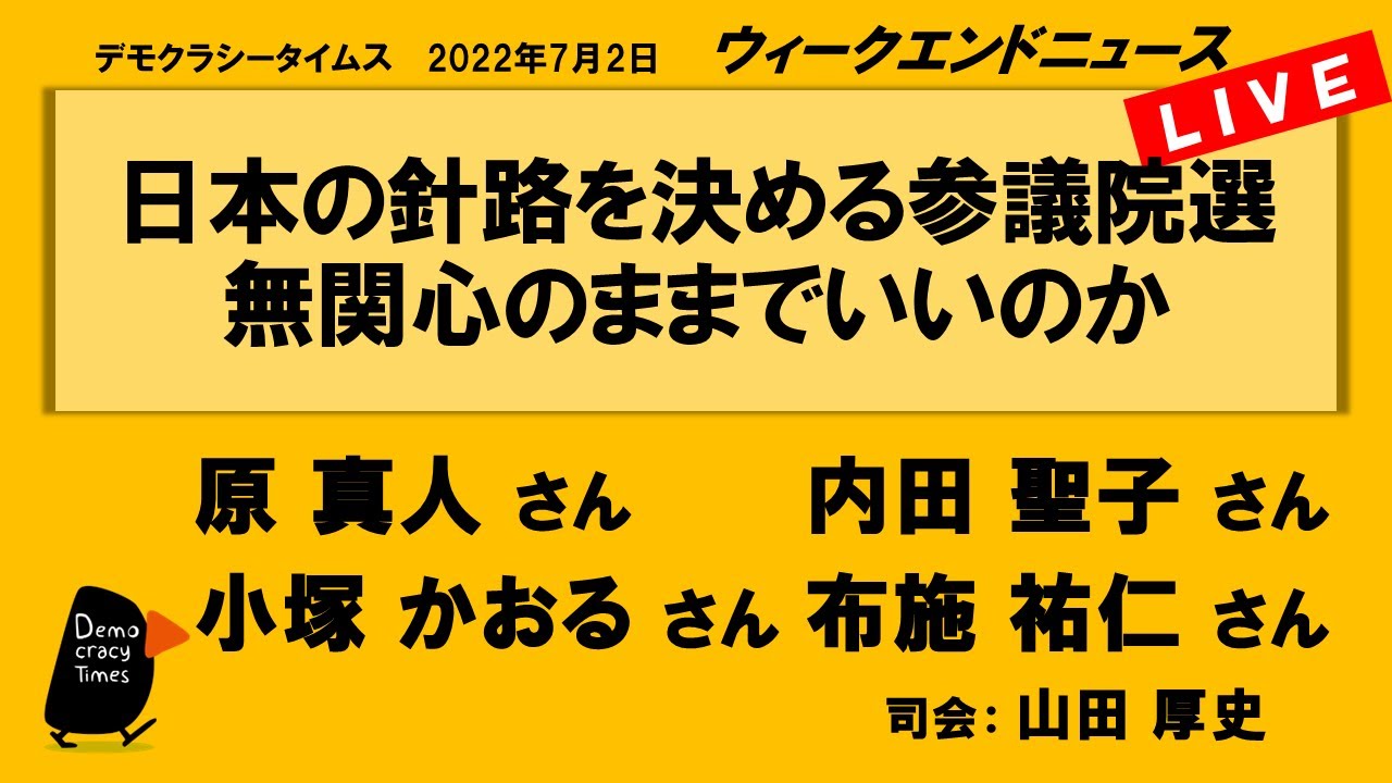 【今週のテーマ】 ・テロを許すな! 安倍氏襲撃 ・生活と国防 ・憲法、エネルギー ・選挙を消化試合にするな!! 【出演】 山田 厚史さん (ジャーナリスト) 望月 衣塑子さん (東京新聞記者) 三木 由希子さん ( […]