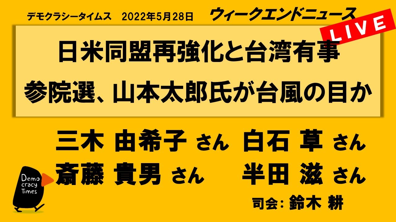【今週のテーマ】 ・北欧2国NATO加盟とバイデン初来日 ・岸田政権支持率63% ・「侮辱罪」厳罰化がもたらす萎縮 ・沖縄復帰から50年 【出演】 北丸 雄二さん (ジャーナリスト) 雨宮 処凛さん (作家、反貧困活 […]