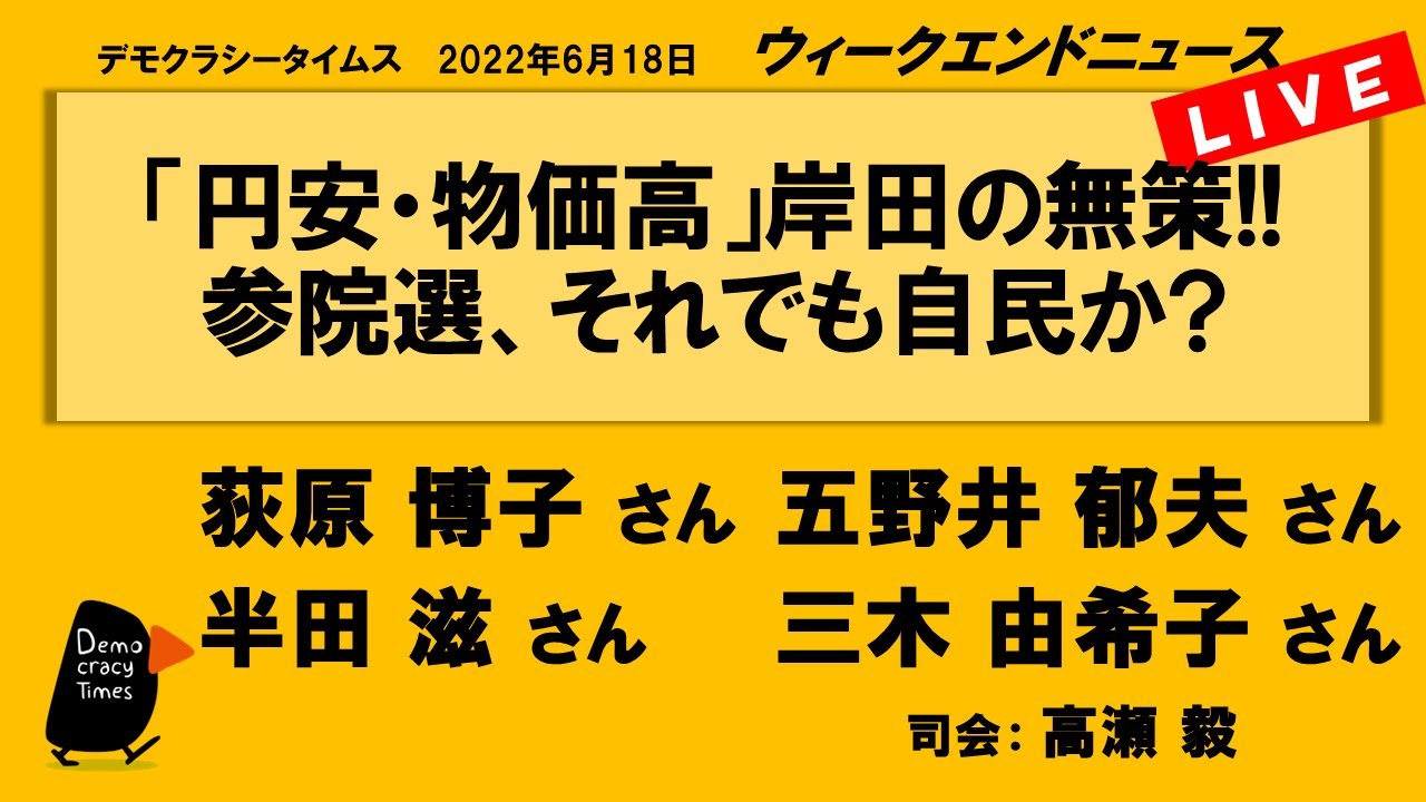 【今週のテーマ】 ・円安、物価高・国会閉幕・参院選 ・原発事故 最高裁は国の責任否定 ・ウクライナ長期戦へ支援拡大 【出演】 荻原 博子さん (経済ジャーナリスト) 五野井 郁夫さん (政治学者、高千穂大学教授) […]