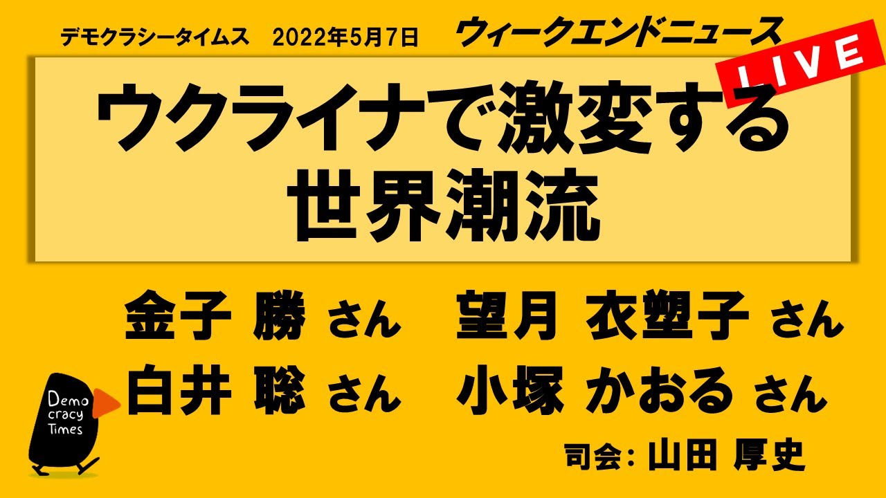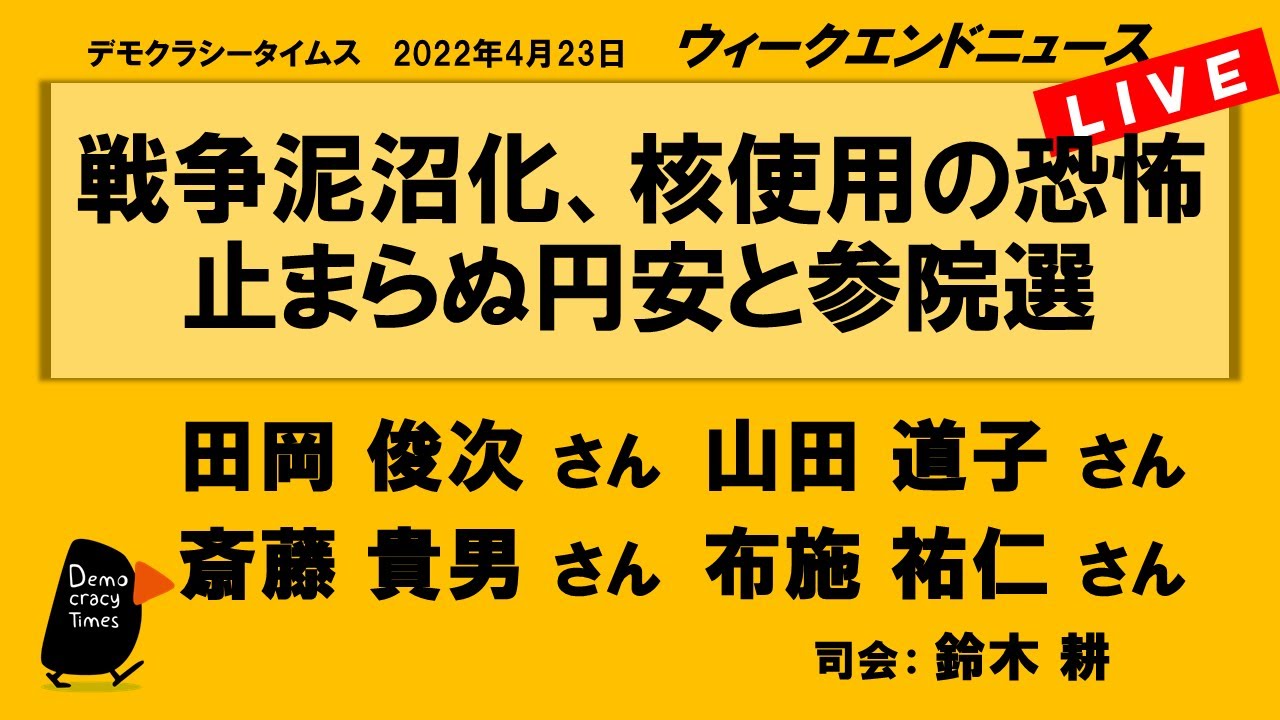 【今週のテーマ】 ・ウクライナ戦争泥沼へ ・参院選、野党分裂で「改憲」も? ・もう一度、原発について考える ・ツイッターはどこへ行く? 【出演】 田岡 俊次さん (軍事ジャーナリスト) 山田 道子さん (元サンデー毎 […]