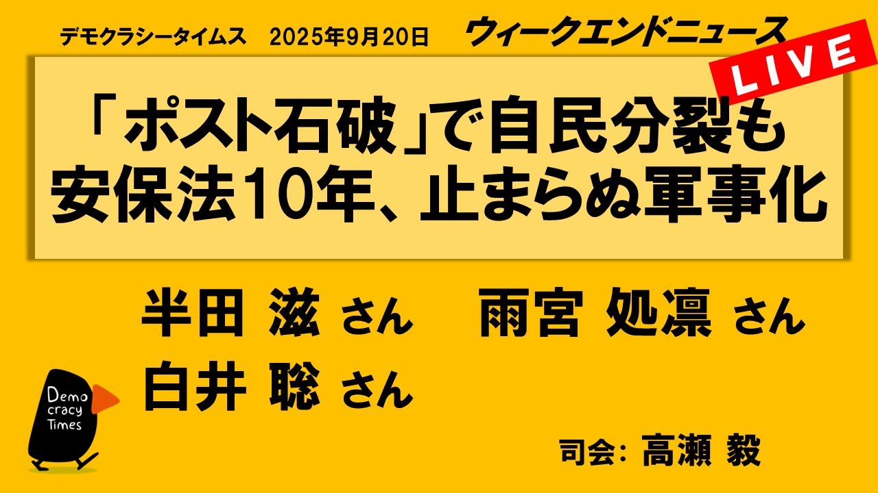 【今週のテーマ】 ・何も変わらぬ“自民劇場” ・安保法10年戦時体制前のめり ・カーク事件で亀裂深まる米国