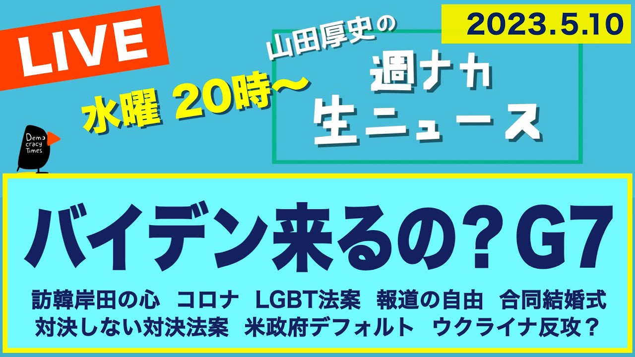 <気になるニュース> ・岸田「心痛む」、伊「歴史問題脱却」、とにかく改善迫られて ・コロナ5類へ費用自己負担 WHOは「緊急事態終了」 ・実質賃金2.9%減、12ヶ月連続で低下 ・トヨタ最高益、営業利益3兆円 いつまで続く? この順風 ・LGBT法案保守派配慮 「文言修正」でG7前決着へ ・報道の自由 日本は68位G7最下位 ・統一教会合同結婚式、地方選応援候補9割再選 ・対決法案、対決せず? 軍需産業国有化法、入管法、衆院通過 ・米利上げ金利5%超、政府債務上限危機、バイデンG7欠席? ・露戦勝記念日も内紛? ワグネル撤退から一転、戦闘へ 2023年5月10日 生配信