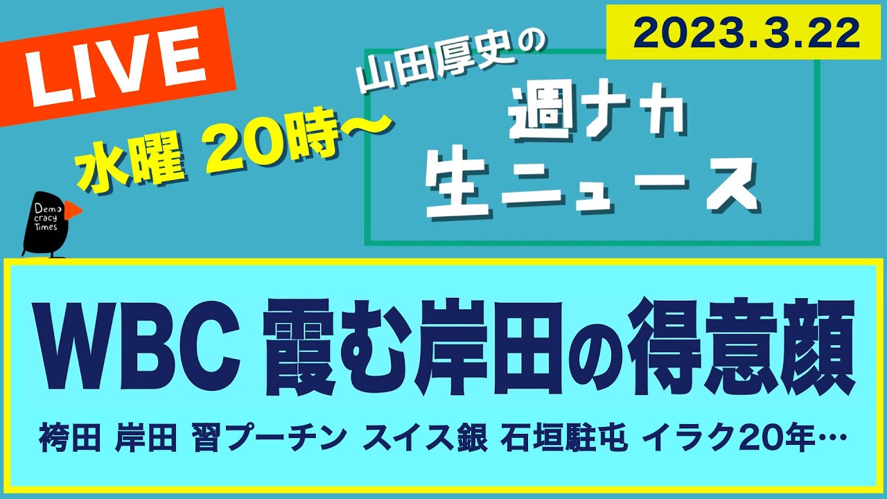 毎週水曜 20時〜 山田厚史の週ナカ生ニュース <気になるニュース> ・袴田さん無罪へ 検察特別抗告断念 ・高市氏「質問しないで」撤回 党内から不評 ・岸田キーウ訪問、モスクワ習近平・プーチン会談4時間半 ・岸田首相「G7招待」乱発 印からウクライナまで ・米国発金融不安、欧州へ 中央銀行束になってドル供給 ・男性取得85% 目標、岸田の「異次元」子育て政策 ・日韓正常化 世論は高評価 政権支持率上昇 ・石垣島に陸自駐屯地「反撃能力」に住民動揺 ・トヨタ織機 排ガス規制データ捏造不正14年 ・イラク戦争から20年 米「力の驕り」そして今