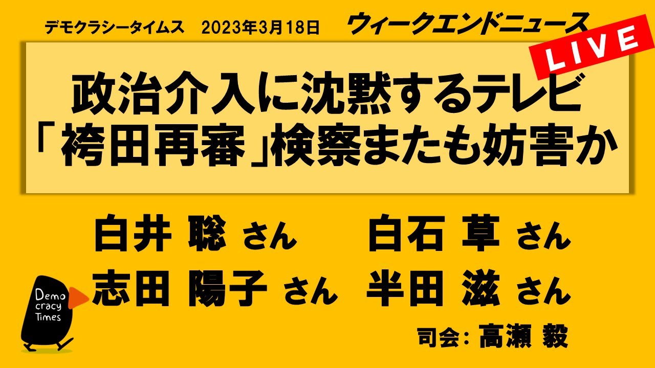 【今週のテーマ】 ・「放送法」解釈で高市大臣暴言 ・「袴田再審」検察抗告を協議 ・日韓首脳会談 ・LGBTQ法整備先進国が日本に促す 【出演】 白井 聡さん (政治学者、京都精華大学准教授) 白石 草さん (ビデオジャーナリスト、Our Planet-TV代表) 志田 陽子さん (憲法学者、武蔵野美術大学教授) 半田 滋さん (防衛ジャーナリスト、元東京新聞記者) 司会は 高瀬 毅 2023年3月18日ライブ配信