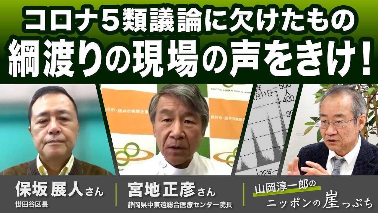 病床500床の地域の拠点病院中東遠医療センター院長の宮地正彦さんと世田谷区長保坂展人さんに聞く、コロナ対応最前線の今。 5月8日からコロナは感染法上の分類が2類から5類に引き下げられ、様々な規制が緩和されます。コロナは風邪だという方からウィズコロナで経済を回さなければという方まで、歓迎する声がネットには多くあります。しかし、報道されないために見えないことになっているコロナ患者の診療・治療の現場では、5類引き下げ後の医療難民・医療崩壊を危惧する声が大きくあります。元気で強い人ばかりではない社会で、コロナ感染をどう受け止め犠牲を減らすのか、3年間最前線を支えてきた医療と地域の現場の声をぜひ聴いてください。 2023年1月27日 収録