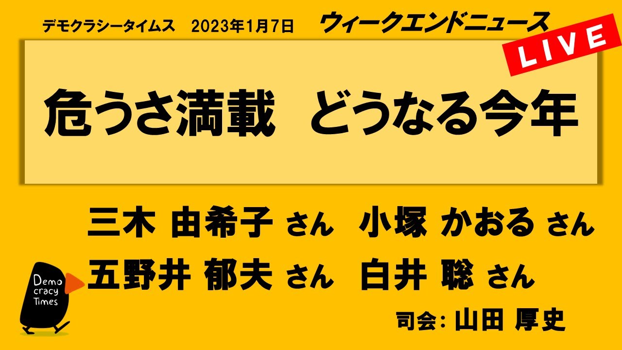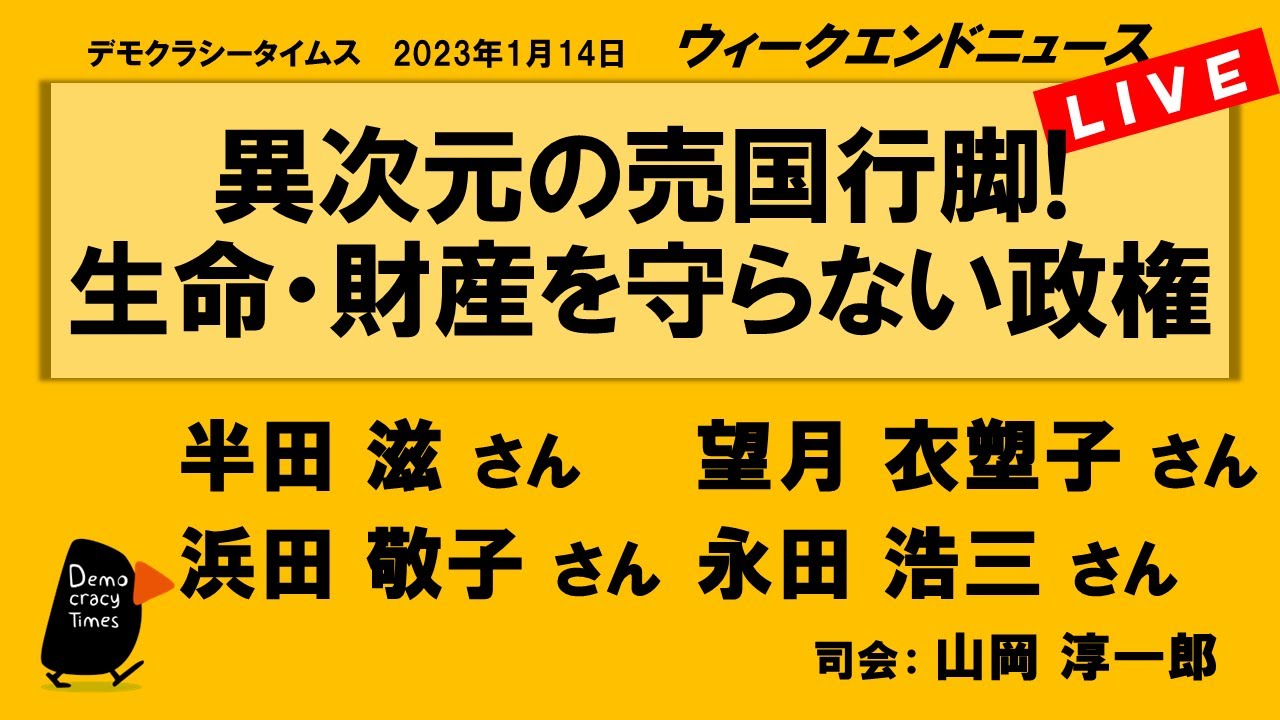 【今週のテーマ】 ・日米「敵基地攻撃」深化と増税 ・命の選別「姥捨て」コロナ無策 ・子ども政策、かけ声倒れか 【出演】 半田 滋さん (防衛ジャーナリスト、元東京新聞記者) 望月 衣塑子さん (東京新聞記者) 浜田 敬子さん (ジャーナリスト、元AERA編集長) 永田 浩三さん (武蔵大学教授、元NHKプロデューサー) 司会は 山岡 淳一郎 2023年1月14日ライブ配信
