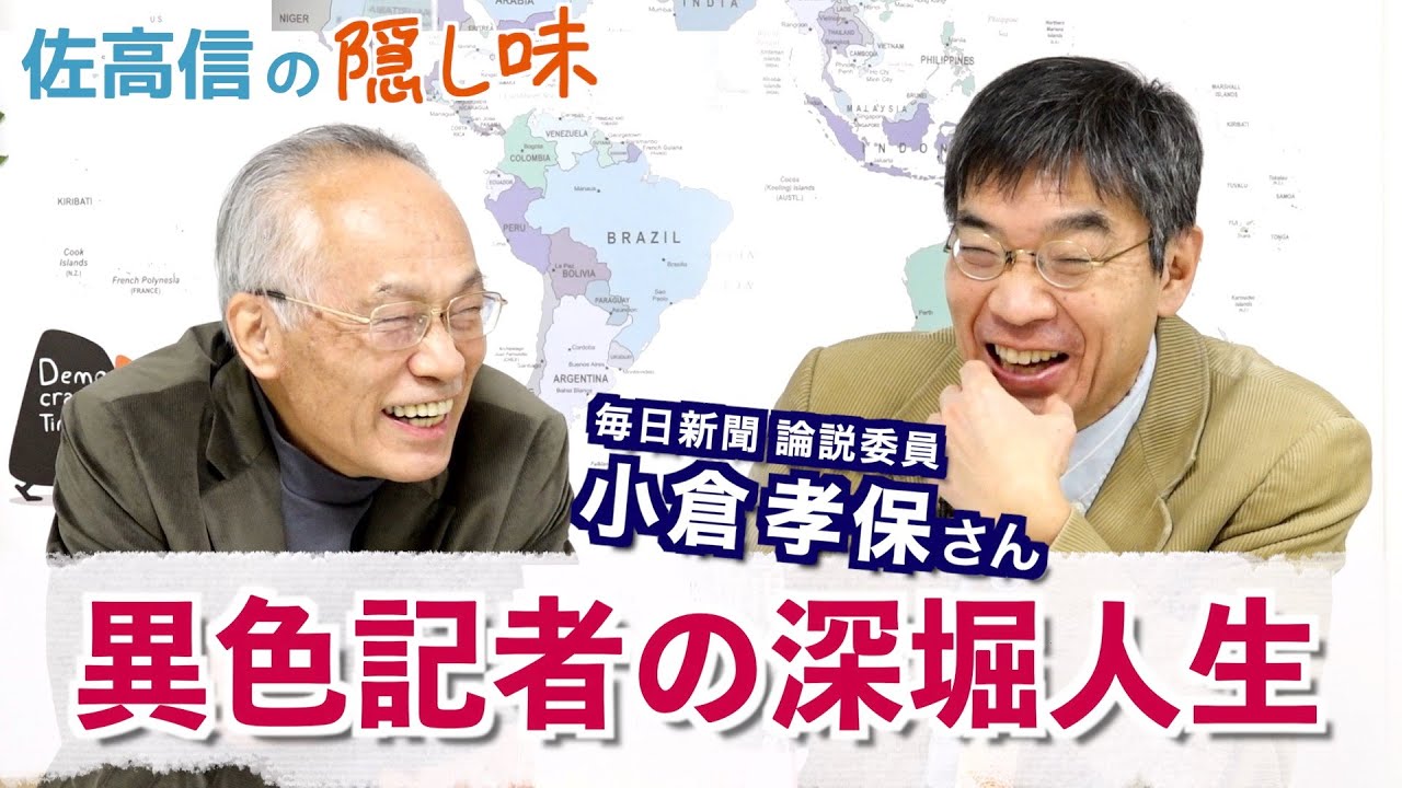 佐高信を醸す隠し味、今回も異色の人選。毎日新聞論説委員で、毎週金曜にコラム「金言」を連載している小倉孝保さん。海外特派員として国際情勢の裏側に迫りながら、他方で魅力的な異色の人物の評伝を多数執筆し、その視点の豊かさと徹底した取材で他を圧倒しています。 掘れば掘るほど小倉さん自身も面白い、佐高さんの興味もつきません。 番組で触れられたものを含め、著作の一部を紹介します。ぜひご一読ください。 『戦争と民衆 イラクで何が起きたのか』毎日新聞社、2008 『大森実伝 アメリカと闘った男』毎日新聞社、2011 『ゆれる死刑 アメリカと日本』岩波書店、2011 『ロレンスになれなかった男 空手でアラブを制した岡本秀樹の生涯』KADOKAWA、2020 『十六歳のモーツァルト 天才作曲家・加藤旭が遺したもの』角川書店 2021 『踊る菩薩 ストリッパー・一条さゆりとその時代』講談社 2022 2022年12月23日 収録