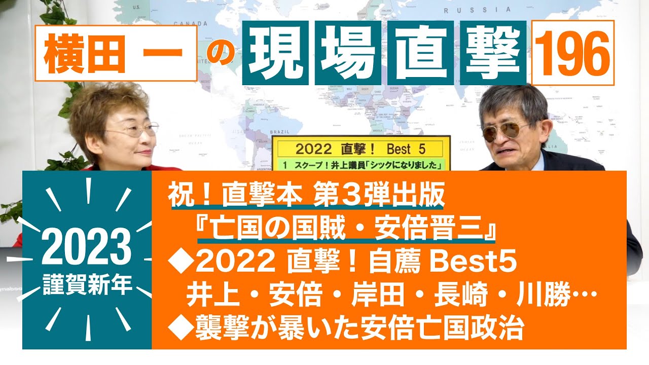 今年の直撃を振り返る&新著紹介の特別編! 疲れを知らない横田一の列島疾走直撃、2022年を振り返ります。 横田自薦の5本と番外をお届けします。 第1位は、もちろん、あの「井上議員、「シックになりました」」 第2位以下はなんでしょう。お楽しみにご覧ください。 そして、横田直撃第3弾『亡国の国賊・安倍晋三』が、出版されました。 なんと、直撃本は、一年に2冊も出版できました。