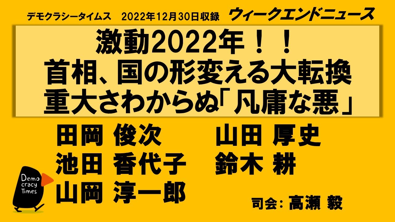 【今週のテーマ】 ☆2022年 今年を総括 ・またも閣僚辞任 岸田首相の無定見 ・再び高まるコロナ・インフルリスク ・学術会議改変 学者ら方針撤回を要求 【出演】 田岡 俊次 (軍事ジャーナリスト) 山田 厚史 (ジャーナリスト) 池田 香代子 (ドイツ文学者、翻訳家) 鈴木 耕(編集者、ライター) 山岡 淳一郎 (ノンフィクション作家) 司会は 高瀬 毅 2022年12月30日 収録