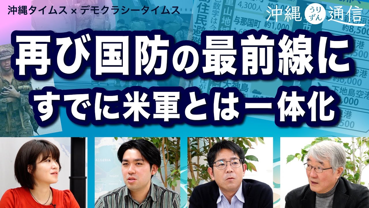 沖縄を知る、沖縄から見る、沖縄タイムスとお届けする「沖縄うりずん通信」 東京では防衛費43兆と敵基地攻撃能力が主たる話題ですが、沖縄では、すでに防衛3文書を先取りする事態が起こっています。自衛隊は米軍と一体化して訓練をし、公道を戦車が走り、米軍が銃をむき出しに行軍訓練をしています。ミサイル防衛網は、離島への配備が急ピッチで進みますが、では、そのために攻撃されたときに住民には避難する時間や手段はあるのかと言えば、もちろんありません。この状況で、有事となったら、沖縄戦の悪夢の再現になるでしょう。島の中に住民が閉じ込められたまま、地上戦が起こります。東京では感じられない、防衛力整備という政策の危うさをお伝えします。 もちろん、明るいトピックスもあります。三宅の体験的NAHAマラソンや赤いばったとそてつの葉の虫かごを紹介します。 MC 三宅千晶(弁護士) コメンテーター 元山仁士郎 照屋剛士(沖縄タイムス東京支社) 鈴木耕 (デモクラシータイムス) 2022年12月21日 収録