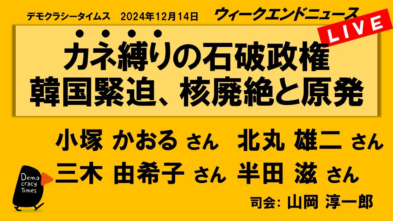 【今週のテーマ】 ・企業献金の禁止は「憲法違反」なのか ・緊迫の韓国、シリア、ウクライナ ・被団協ノーベル賞、日本は原発推進へ