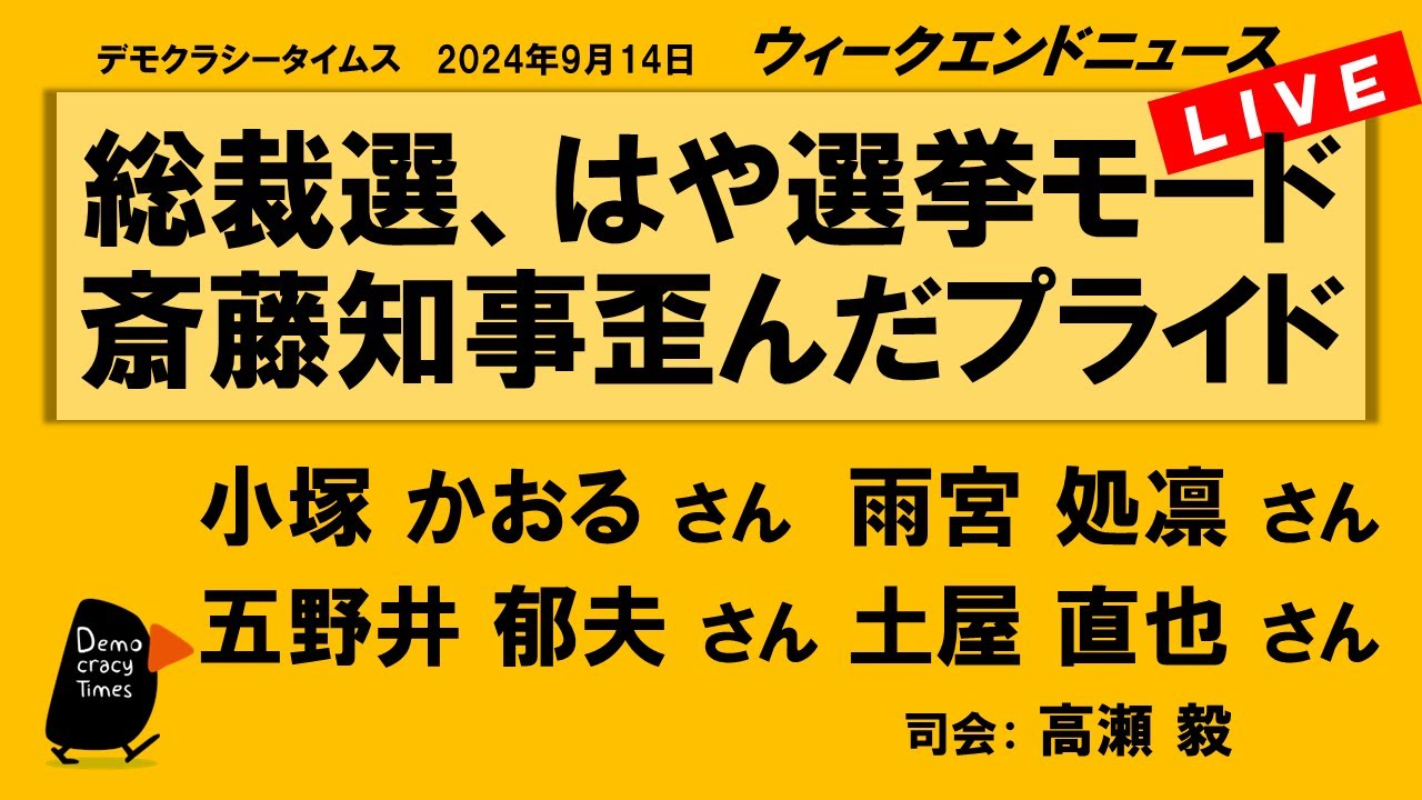 【今週のテーマ】 ・自民総裁選と立憲代表選 ・斎藤知事、辞職か議会解散か ・長崎「被爆体験者」訴訟