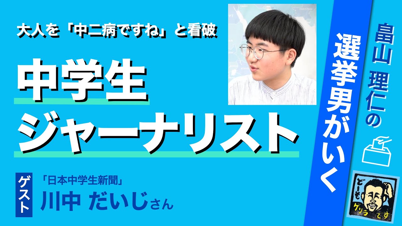 中学2年生の言論人、川中だいじさんは、身のまわりで感じた小さな違和感から出発し、関心のおもむくままに調べ、取材し、民主主義とは何か、人が幸せに生きるとは何かという、普遍的本質的な問いへと思索を深めていきます。師匠と仰ぐ畠山さんとの真剣で温かいやりとりを、ぜひご覧ください。