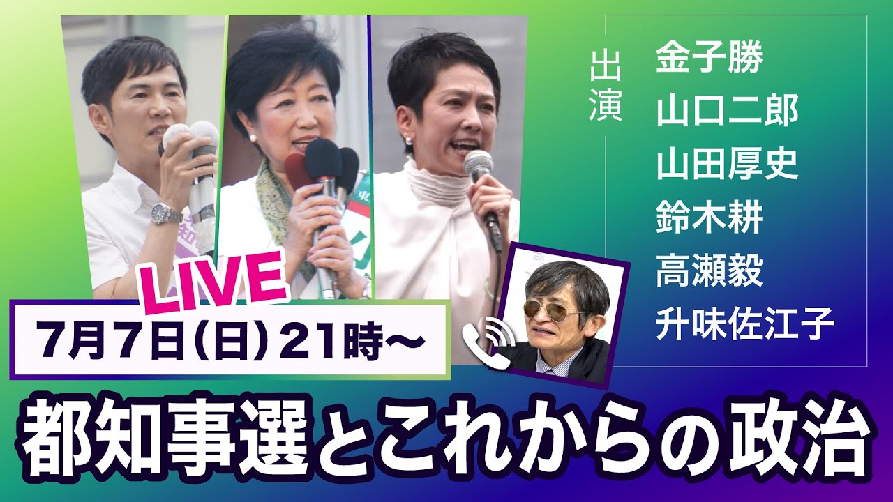 【テーマ】 ・都知事選・都議補選 結果 ・東京のこれから ・政治の潮流は? ・永田町はどうなる ・私たちの政治はどうしたら実現するか