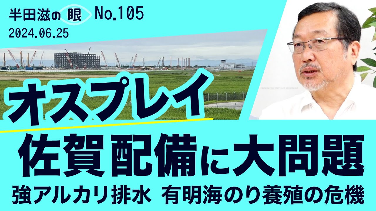 防衛ジャーナリスト半田滋の解説。木更津に暫定配備していたオスプレイが本格的に佐賀空港に移転します。漁民がノリの養殖に不安を持つ中、実際に基地から排出される水によってノリの養殖に影響が出る可能性が指摘されています。
