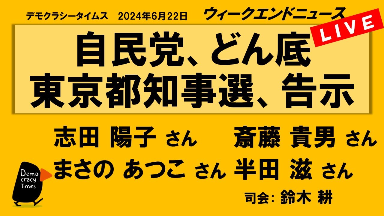 【今週のテーマ】 ・都知事選、荒れ模様 ・エネルギー基本計画と原発 ・自民党の末期症状 ・ガザの地獄、イスラエル内閣不協和音