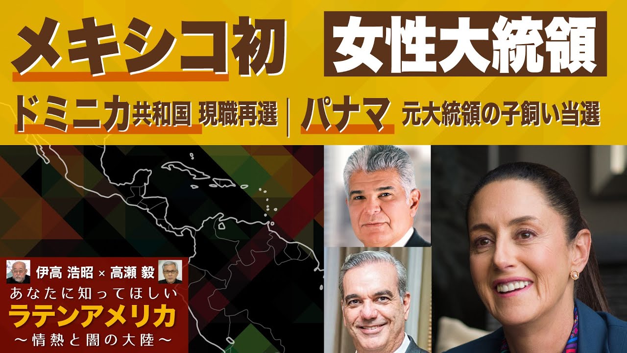 ラ米の大国メキシコの大統領選でクラウディア・シェインバウム前メキシコ市長が圧勝。同国初の女性大統領として10月1日就任します。また5月実施のドミニカ共和国大統領選では現職のルイス・アビナデル氏が再選されました。同じくパナマの大統領選ではリカルド・マルティネリ元大統領の代理候補ホセ=ラウール・ムリ―ノ元外相が当選しました。これら3国の大統領選の結果を分析し、次期政権の方向性を探ります。