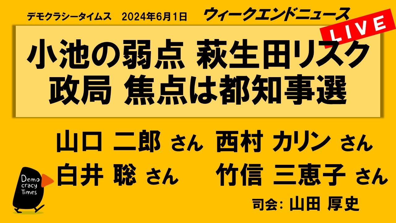 【今週のテーマ】 ・蓮舫出馬 都知事選は激戦に ・負ける自民と国会の迷走 ・「暴走イスラエル」と揺らぐ米国支配