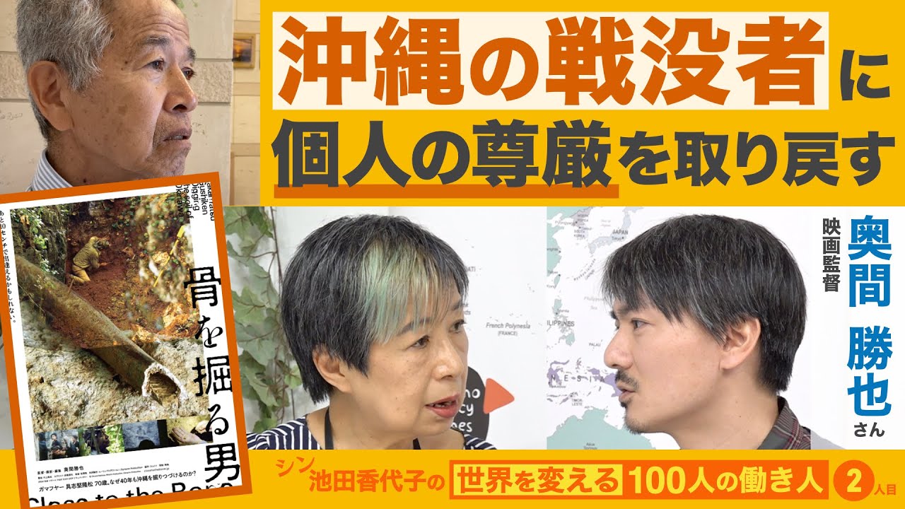戦後80年近く沖縄本島南部に埋もれていた遺骨を、40年にわたって収集してきた具志堅隆松さん。彼を追ったドキュメンタリー映画「骨を掘る男」を完成させたのは、これが初の長編商業配給作品となる若き映画監督、奥間勝也さん。監督自身にも、南部戦線で亡くなった大叔母がいます。会ったことのない死者を悼むとは? 本作は、この問いをめぐるきわめてプライヴェートであると同時に、膨大な命が戦火に奪われ続けるこの世界で人間の尊厳を取り戻す営みを描いた普遍的な作品です。暗闇がガマ(洞窟)からシームレスに繋がる映画館で、ぜひご覧ください。