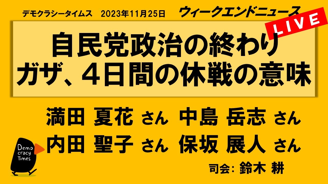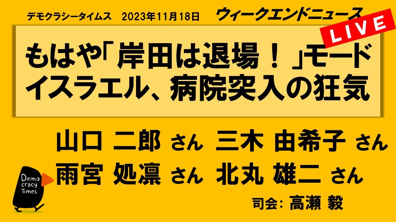 【今週のテーマ】 ・愛想つかされた岸田政権 ・病院襲撃正当化するイスラエル ・大学の自治抹殺